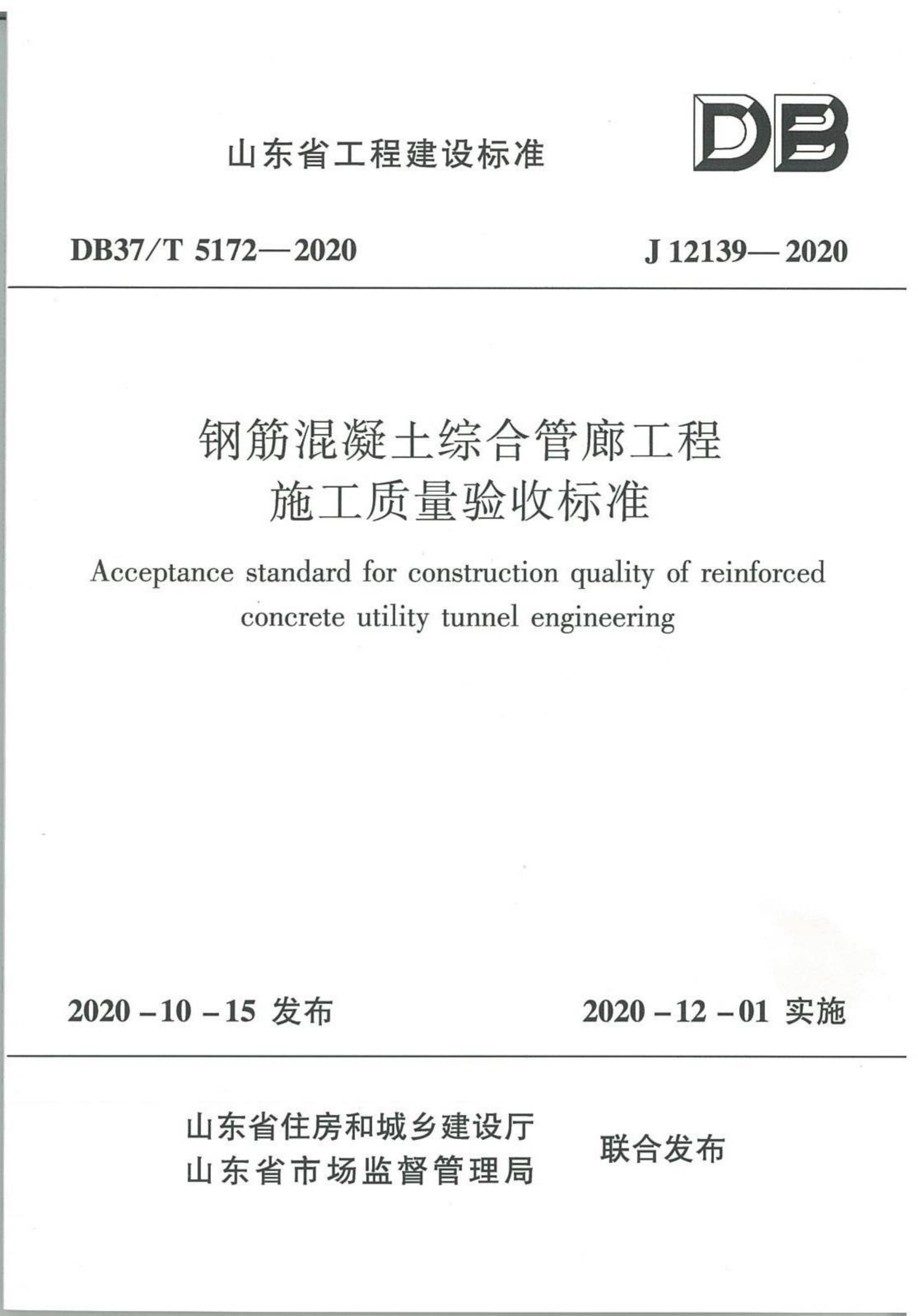 钢筋混凝土综合管廊工程施工质量验收标准