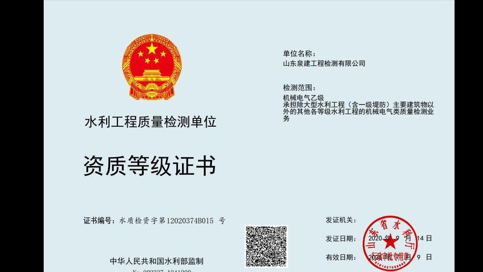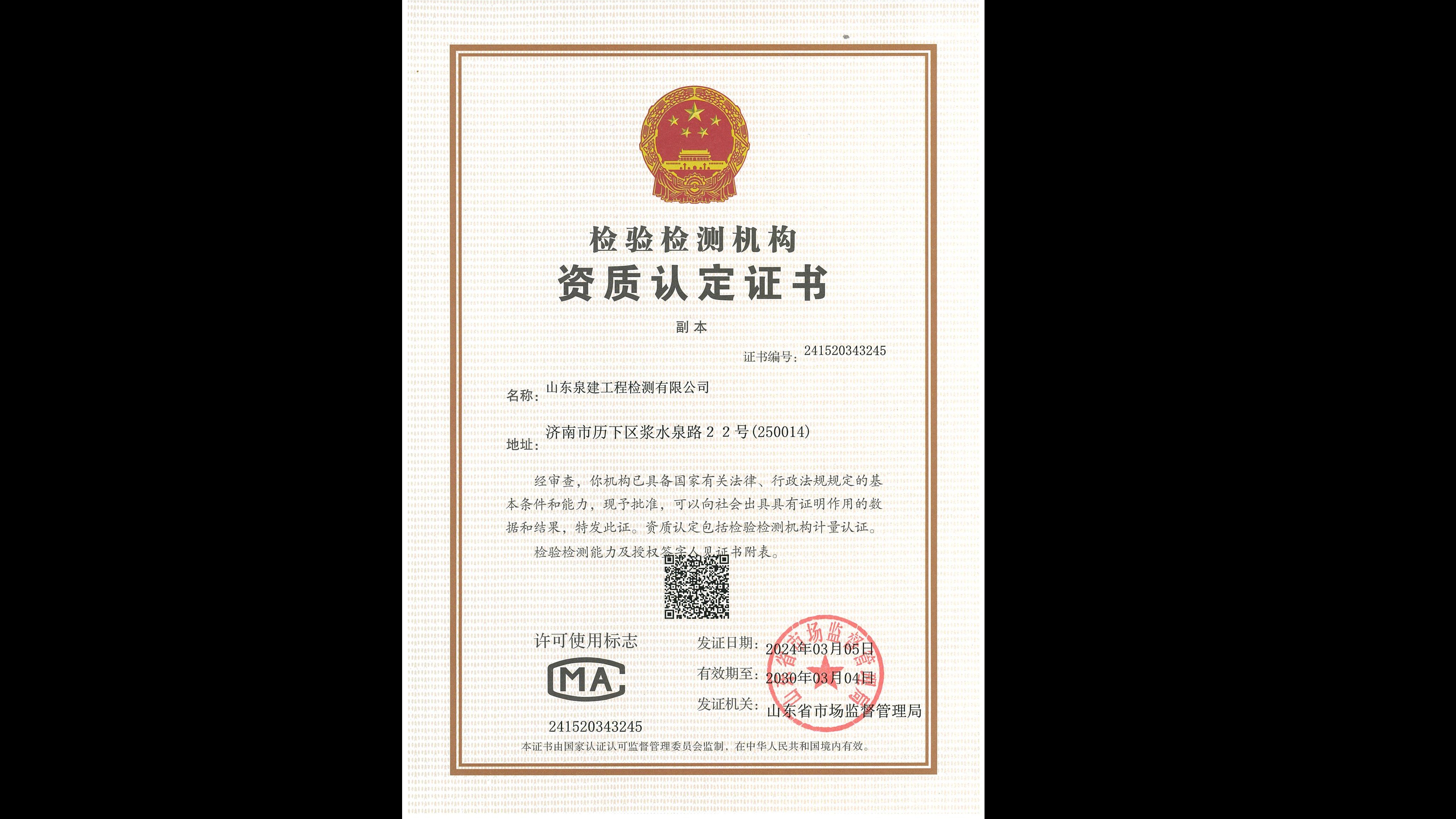 检验检测机构资质认定证书