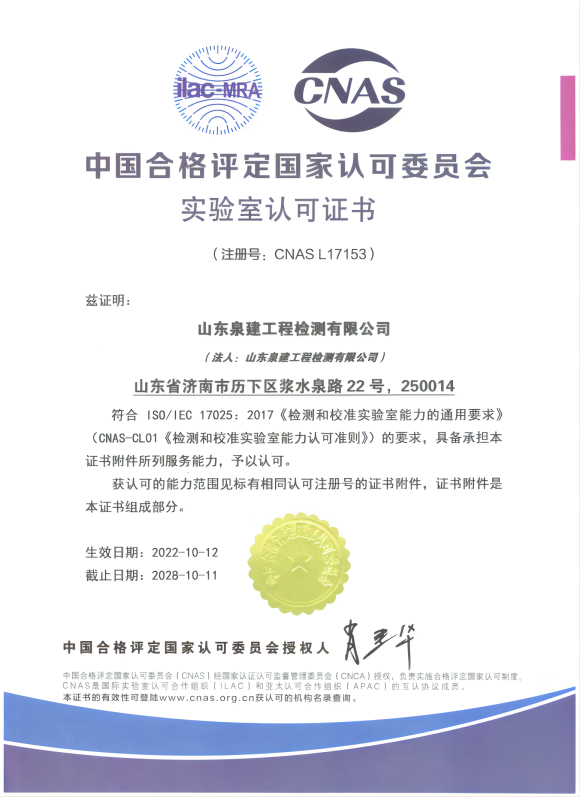 此次CNAS认可资质的取得,标志着公司具备了国家及国际认可的管理水平和检测能力,进一步提高了公司的综合水平,为更好的服务客户打下了坚实的基础。接下来泉建公司将继续努力,持续改进,不断提高公司的综合实力和市场竞争力。